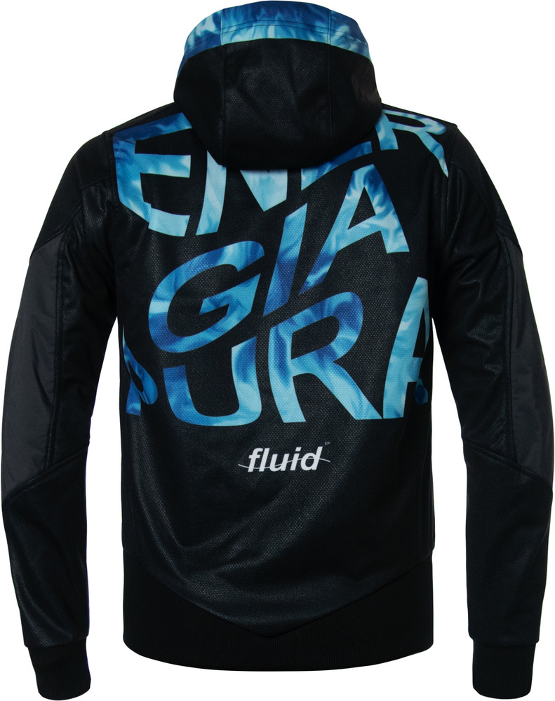 The unique fluid effect design in shades of turquoise and navy blue not only catches the eye but also emphasizes the dynamic character of this jacket. The ENERGIAPURA logo, placed on the chest, symbolizes the innovation and advanced technology behind this product.